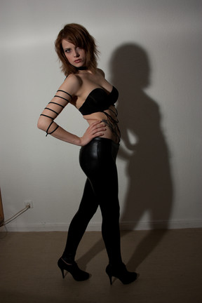 the only thing that bothers me about this photo is the barefeet...lol...some "do me" boots (i like calling them that) would be in order i think...the knee high zipper leathery kind of boots...but great shot still though