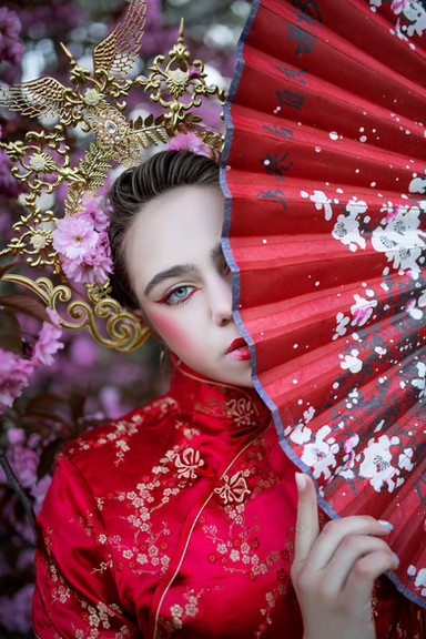 The model did pretty much everything as far as the look goes - the costume, the hair, the makeup. I did go a bit overboard with editing in this one. The leaves are added (from my own photo) and I changed the hair colour and various other things as well. To be honest, I think I could've done the layering much-much better - because I imagined the leaves to be more a part of the scenery but in this they do more look like they've been just pasted on there. But I'm just learning these kind of things so that's my excuse.