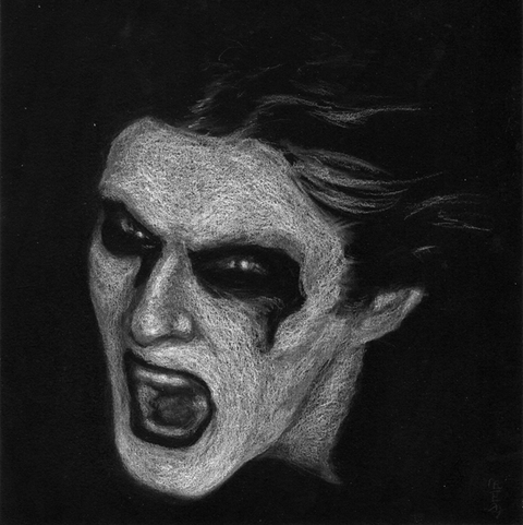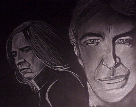 Book five, chapter 24. Snape and Sirius arguing in the kitchen of Grimmauld place.Chalk pastels on black paper