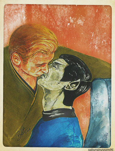 Oh, God, how much i love this! I really like the color choices, Spock's greenish skin looks in particular really great and muscular, and I love how pissed off McCoy seems to be. He's just not giving up on his whining now is he?