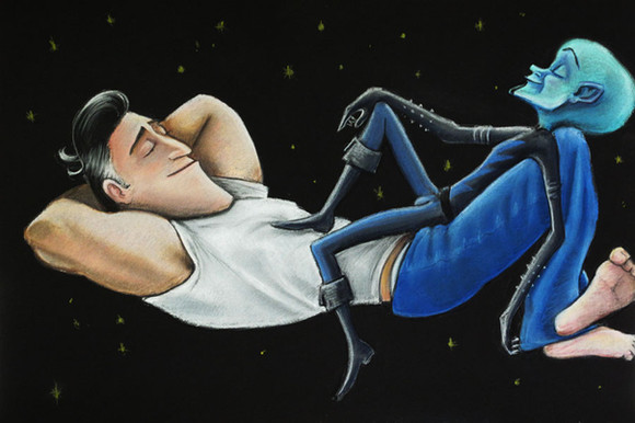 Honestly, this might be one of my favorite MM/MM pieces ever. It's so subtle and adorable and tells a story and oh yeah I do have a foot fetish. Yeah that might be why I like it so much. Also, when I saw you complaining about an inability to draw shoes, my first suggestion was: THEN DRAW THEM BAREFOOT. Seriously, I have YET to see a Megamind fanart that caters to those of us with a great love for a man's bare feet. Perhaps you and I can strike a bargain of some sort--- art for fic?
