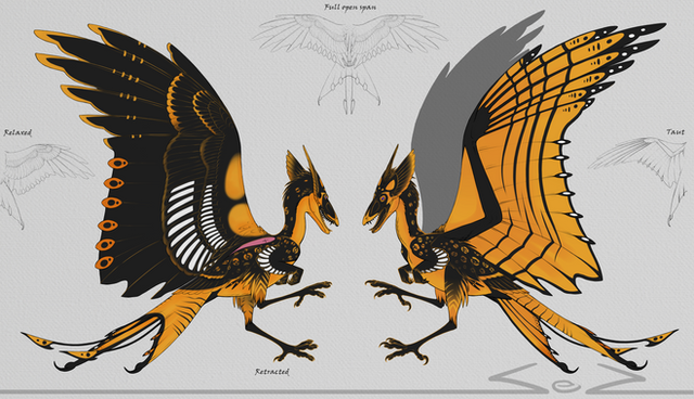 Originally, he was based on Latias and Latios with influence from a yu-gi-oh kick I was on at the time. I don’t know what he was mixed with now but whatever it was was incredibly efficient with psychic abilities. And of course, he’s got the same neurotoxin in his bite and the spines on his back that the others do, though his have a longer lasting disorientation aspect that leaves things more vulnerable.