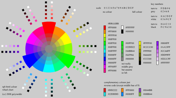 The hexadecimal colors go from 00 to FF. 0 is no color and F is all color. The first two in the 6 number set represent the red, the next pair the green, and the last pair the blue. So Black on the web is: #000000 (no color) and white is #FFFFFF (all color).