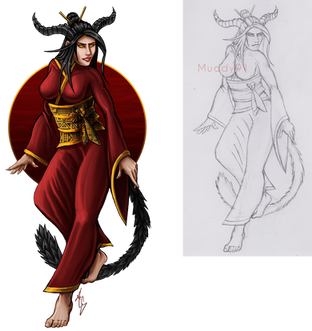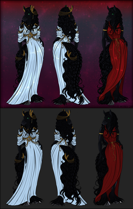 This is a reference sheet for Nefthys of furcadia! This client wanted another outfit than the basic ref allowed for, so this is an altered ref sheet (for additional cost of course!). I decided to throw in just a little semi-shading on the hair and horns and whatnot since she had to wait for me to rebrand.Nefthys © Her player