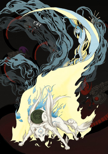 "Ah... Amaterasu. Origin of all that is good and mother to us all.." -OkamiI love Okami so much! It has to be one of my most favorite games. I was trying hard for the whole Japanese scroll style because the game's art is that way.