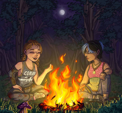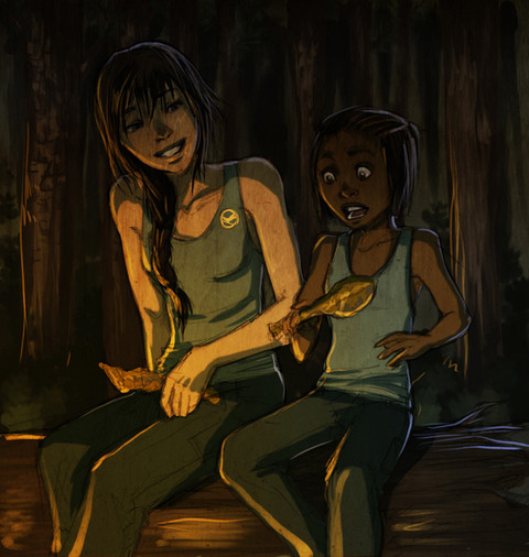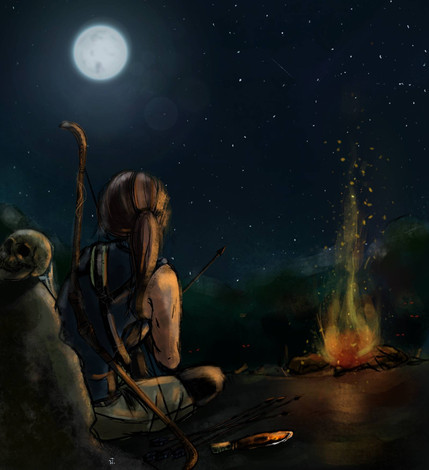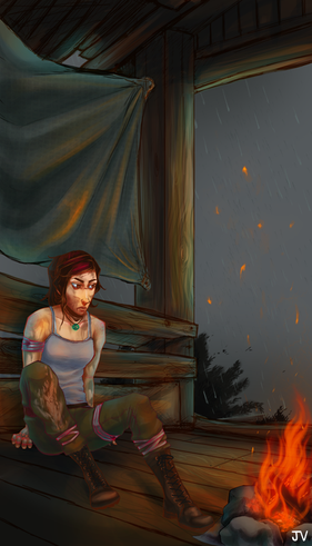 I just got done playing this and I have to say that Lara and Sam are so cute together. After watching their interaction through the game I can see a downtime moment like this between them. Love it. I also like how the background is rough, drawing my eye to the exquisitely detailed couple. <3
