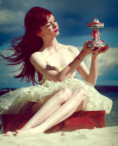 ethereal and amazing. lighting and model make me think fairies, angels, and tori amos (!!) the background is a wonderful offset to the model as well. fantastic piece