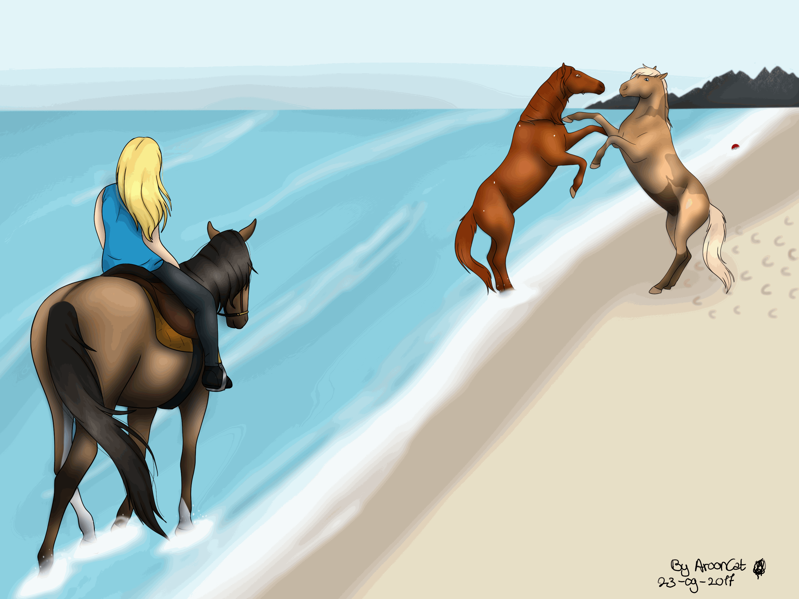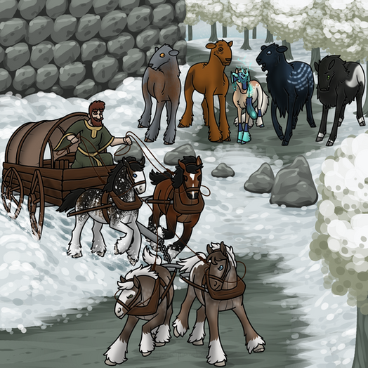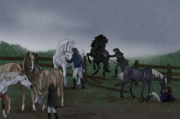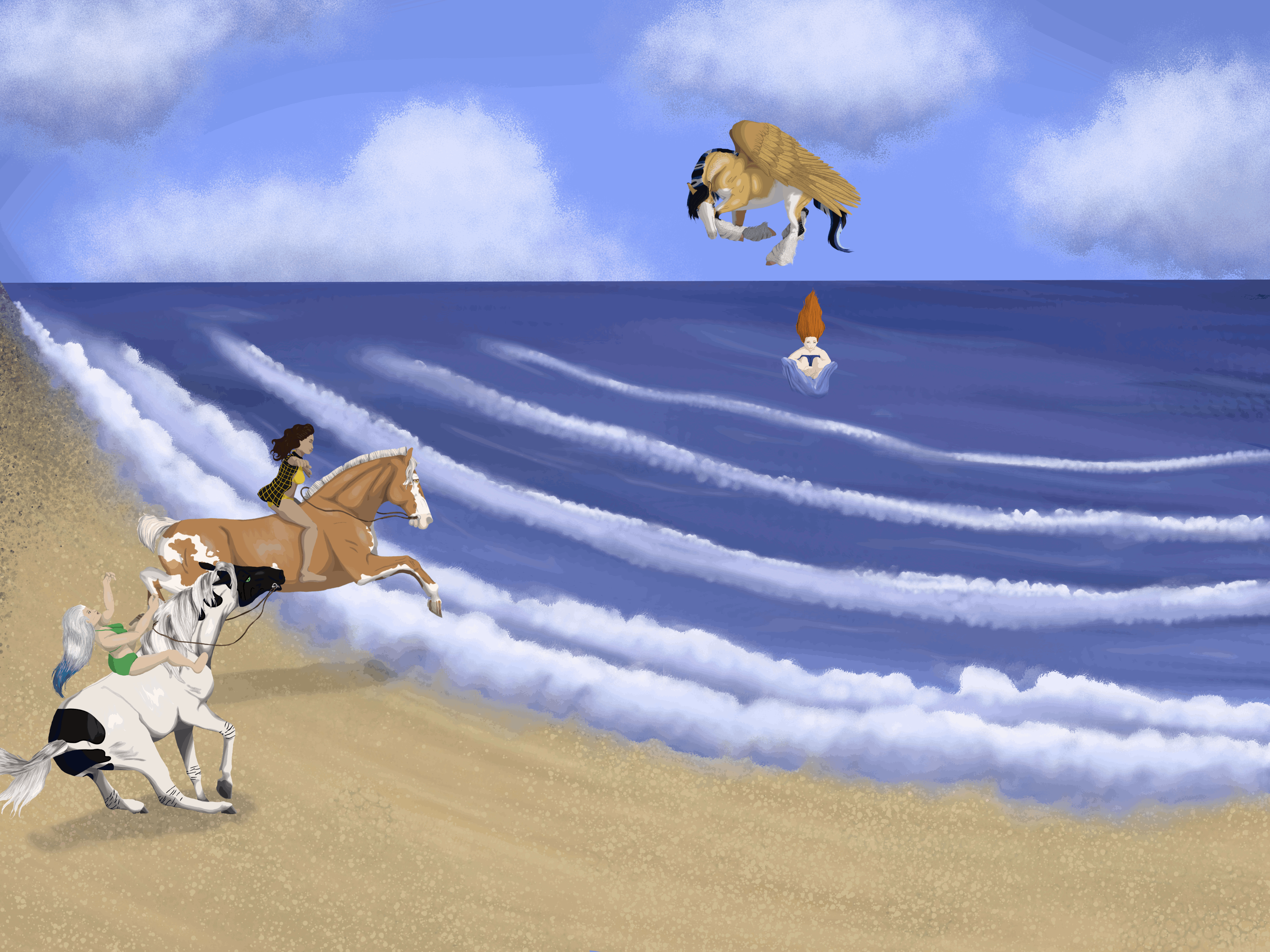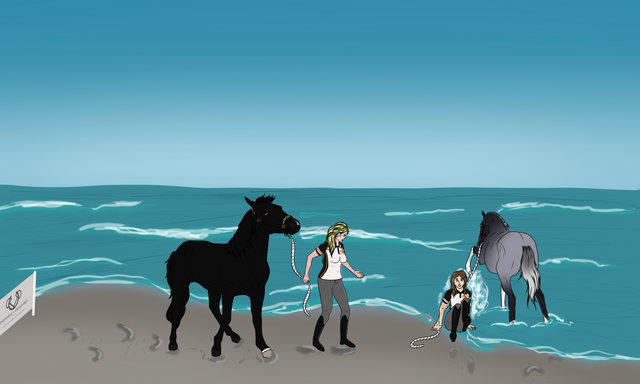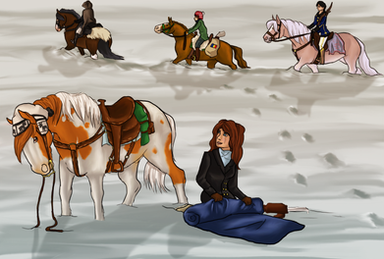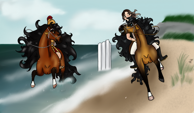 The beaches, in preparation for the Scorpio Races! I love drawing the Piebald mare!This started out small and just kind of...grew. lol