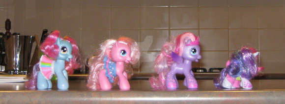 As the ponies made their way through Target, still hopelessly lost, they discovered a most disturbing sight. Their fellow ponies, counterparts, only trapped in a plastic prison, waiting their uncertain fate in the hands of some jam-handed little girl who will try to eat them or flush them down the toilet."Oh my god!" Starsong cried. "What do we do? What do we do?!!!"