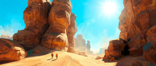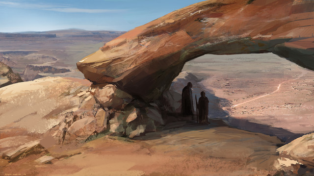 That's a really nice composition. The subtle use of orange in the outfit to highlight the main character in the piece is really well balanced. Awesome work!