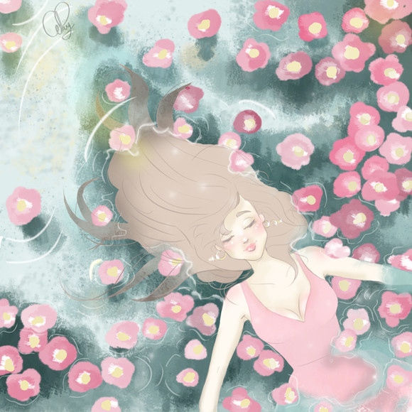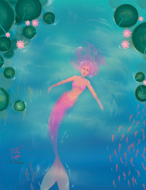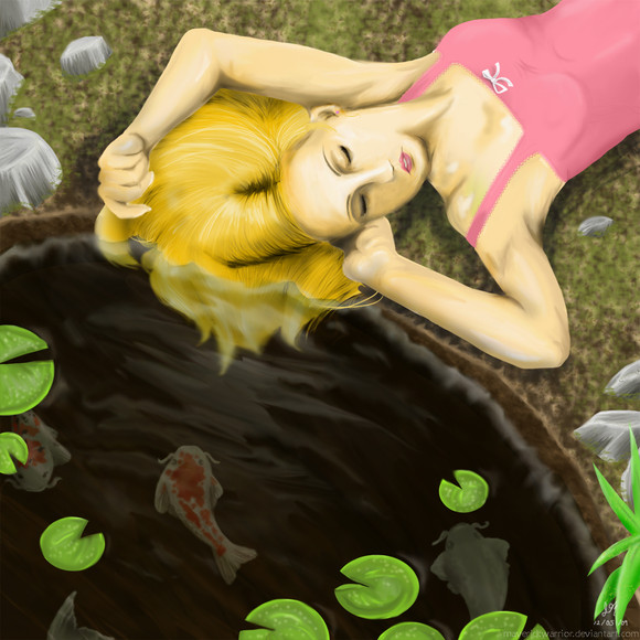 She looks so perfectly happy and relaxed- you've done the water AMAZINGLY well, the way you can tell what parts of her are under and what parts are above, and the hair looks AMAZING!