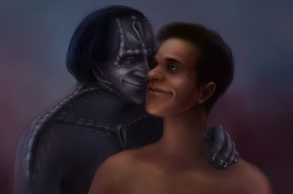 *laughs* Yeah. Someone told me that it looks like she has wings in the back. I hadn't noticed it until they told me and it was already posted. I was just going for a neat design