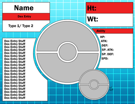 Here's the Pokemon template I made to create Fakemon that have two evolutions. Feel free to use it for your own design if you wish, but please credit me for its creationRelated content