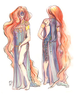 In Jagvi culture it's traditional to place loops of hair over your face (uncomfortable? Nope.) and for a woman over fifteen years of age to tie their hair in one bun. Only nobles are allowed to decorate their hair with jewelry and stuff, and as you can tell the Aynl are very female-oriented. XD