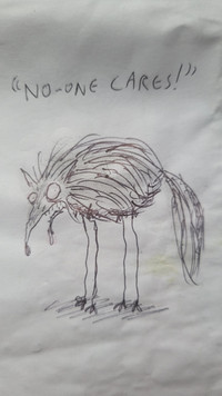 Lena was hereLater i was in a emomode (not really... just wanted to draw a emopicture), so i drew a guy with a hole in his chest X) ... And a eye... And some mountains