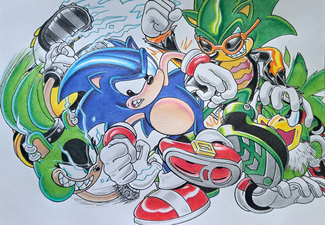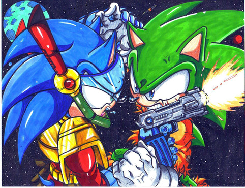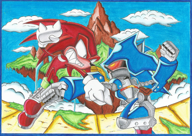 weeeell..yea i colored the big page 1st which is knuckles vs. scourge....in this scourge was suppose to look like a holographic figure but i didnt make the colors real lite so it would look like a hologram scourge..that was an epic failRelated content