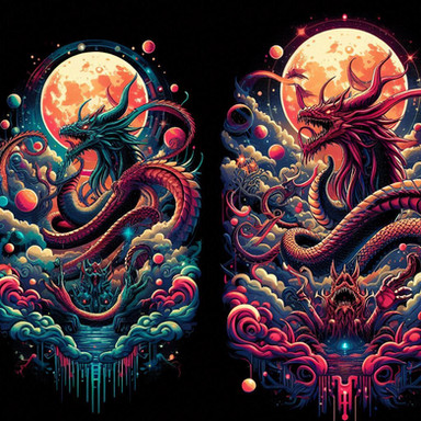 fantasy midjourney character/scapes creation 2023 - Loosely based off Ancient Chinese Dragon Style.