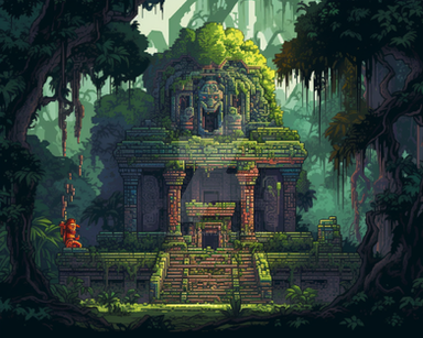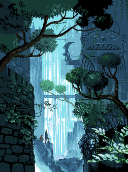 #animation #fantasy #jungle #landscape #nature #pixelart #ruins #scifi #ships