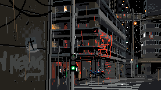 #android #animation #city #cyberpunk #dark #night #pixelart #rain #robot #scifi