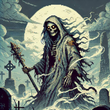 #cross #dark #death #fantasy #graveyard #night #pixelart #reaper #skeleton