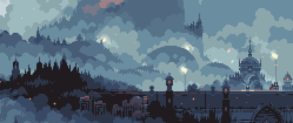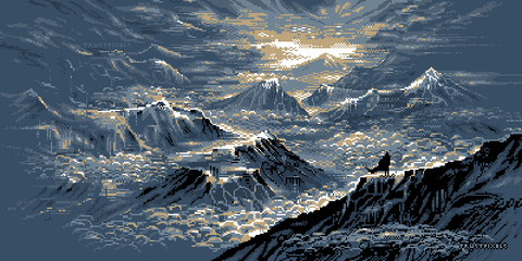 #clouds #fantasy #landscape #mountains #pixelart #sky