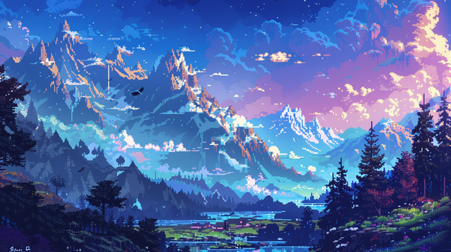 #dragons #fantasy #landscape #mountains #nature #sky #sun #pixelart
