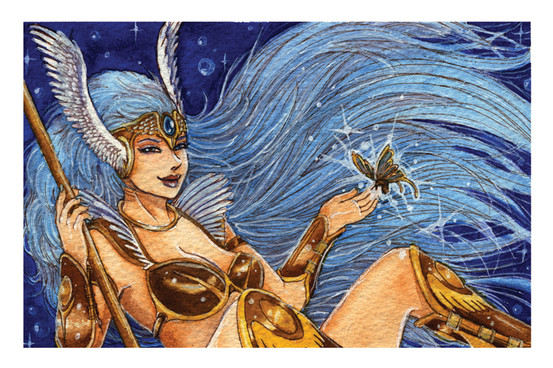 Very fantasy like feeling flows out of this, i like this piece and it's colors. She's something mythical, not often seen. She is secret being of the rainforest. That's how i see her. I hope you like her. This comes as postcar to artistalleys sales tableRelated content