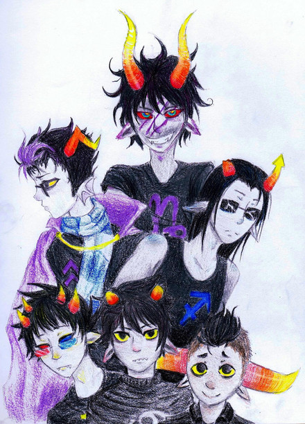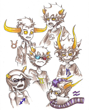 Its got Gamzee, Equius, Karkat, Nepeta and Tavros. (Along with the four trolls I never seem to draw for some reason.)