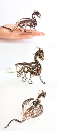 We are happy to announce the birth of the youngest member our dragon family. Dragon baby is still waiting for a suitable baby linen (medallion setting in practice...)This little fellow is made mainly of watch parts. Head is made of a few dozens of tiny axes (taken out from watch gears); tail and neck are made of gears for example. Handcrafted from scratch of course. I will make a medallion with him.