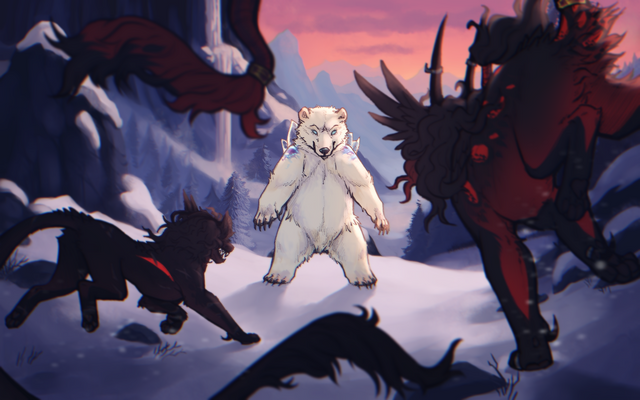 Drakhan soldier Giso on duty, playing a game of endurance with the Frigid Bear...Entry for The Grand Hunt, May