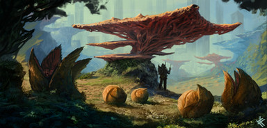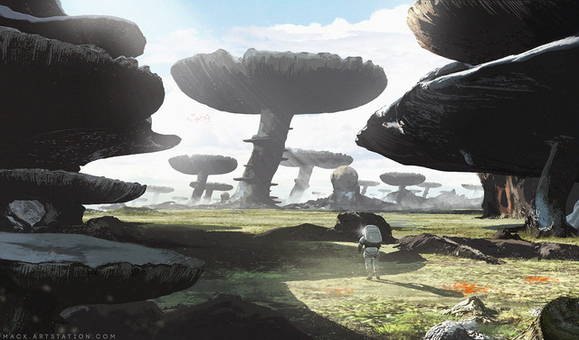 For this I started with a very weird shape I scribbled down, without thinking of anything. And when I saw the shape I thought of something alien like this. And then I made it! So not really any inspiration. But I looked at some plants while working on it.