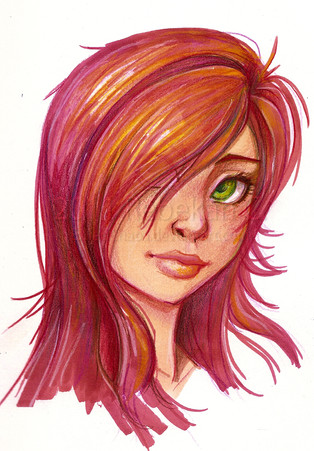 I drew the hair during an art club meeting three weeks ago, and I liked it so much that I was afraid to draw the face for fear of ruining it. But then the next day I was at ~Serenidy 's house and we were waiting for the party to start, and there was nothing to do so we decided to draw for a while. I didn't feel like starting something new, so I added a face. And hated it. And promptly erased as much of it as I could. Later that week I didn't feel like doing homework, so I fixed what I could.I'm still not fond of it (I like the hair, but the skin bothers me a ton, since a little bit of the awful first attempt still remains), but today a lot of people said they liked it, so I figured I'd post it anyway.