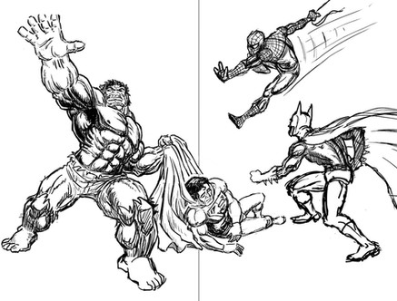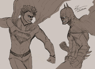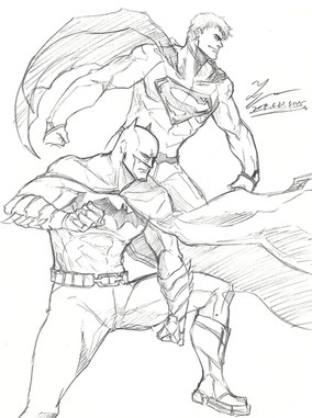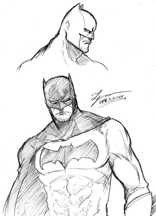 really like the anatomy on your pieces however some of the poses are ever slightly off. Batman's elbow should be bent more as that is a more natural pose.