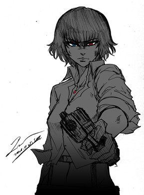 Lady's reaction to seeing Dante and Trish getting quite friendly and flirtatious with each other. She wants in on the action.