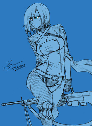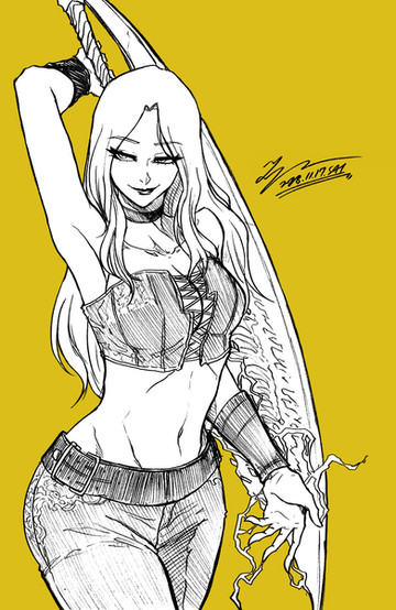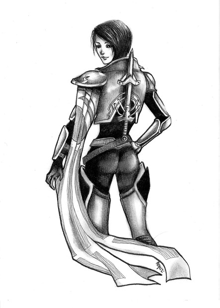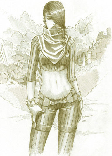This is totally unexpected,but a welcome surprise. It is a delightful sight for me to have come across a magnificent hand drawn picture of Lucia and her assuming an appropriate action pose as she wields her cutlasses in both hands and is ready to take down some demons. A person could wash clothes on the muscular abs Lucia has there. It is no wonder why she wears a shirt that leaves her abdomen completely exposed. Her tight pants do a great job of drawing attention to those stellar hips of hers. Agile and speedy, Lucia is a deadly devil huntress not to take lightly. You have done a remarkable job here on this picture of Lucia. Keep up the fine work.