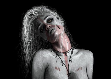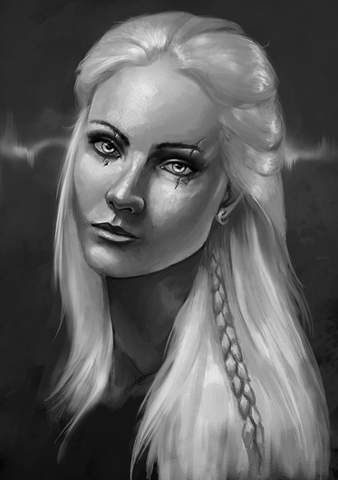 after more than 3 hours struggling with white hair on "darker" skin and having troubles with values and balance i decided to stop