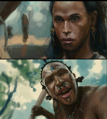 The skin is great I love the red on the nose. The color composition is looking real good to me, and the hair nice. Especially around the jaw and ear is awesome. I would make the color in the eyes stand out a tad more maybe some brown on the bridge of the nose. I don't know much about painting and as far as techniques and all that jazz.I have only been Painting for 3 months myself but i find that if it works, work it. Readable close: yes/ Readable far: yes. shadows look pretty good to me. In total I would say 1-10, I am rating it about an 8 ATM. Very nice Concept. Wow! I have a piece that needs a critique if you wanna check it out.