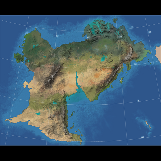 This is Auloran, the world that I created for a DnD Campain that I never ran...unfortunately.This is the "correct" topography style map, I guess is the right way to put it. I wanted a representation of the world so my players could get a good grip on how the land was supposed to be represented in each area.