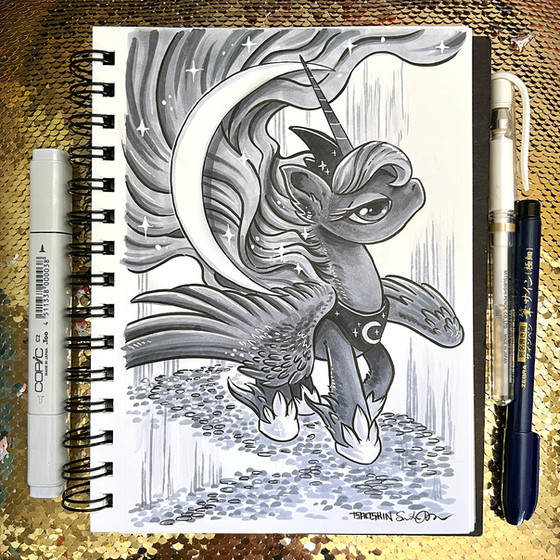 That is one good good moon horse. It's awesome that you got to work with Paper Pony! They do make marvelous things. We've got two or three of their shadowboxes hanging up where my friends and I play D&D.