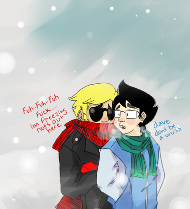 yess i got inspiredmy headcanon is that jake can't stand cold and dirk is cool with it hhejehe (get it, cool)