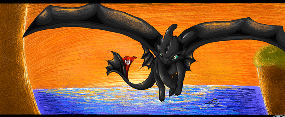 This is wonderful. You did a really good job on the lighting underneath Toothless. The worst part is probably the water - but when I say 'worst' I mean 'least best'. The water still is very good, and I could never hope to do something like this. Favourite!