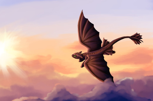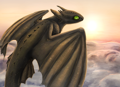 I simply adore this drawing! The colors and shades are very well blended when it comes to Toothless. The ocean does look a BIT sloppy, but I still love the way it looks. The boats in the distances was a very nice touch, as so was the sun touching the horizon. I love the fainted clouds in the pink, dusty sky! It gives the whole atmosphere of this drawing kind of a serene feel. I noticed that Toothless didn't have his fake fin on his tail, so I am guessing this was based before his encounter with Hiccup? Or possibly a mistake. I'm not sure. C: But either way, I love the detail in this. There is only one more thing I'm not to sure about in this picture, and that would be the extension of his right arm, and the shortness of his left arm. It may be bent or something, and its hardly noticable. I was just curious as to whether it was bent or that was yet another mistake.
