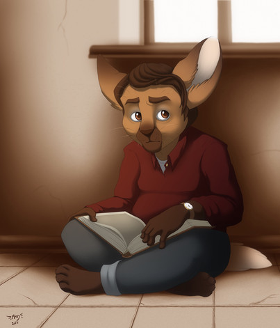Aww, this is so sweet! I absolutely love the delicate nature of your style and all the flowing details and I think you've applied this to Toby so wonderfully well. On top of that, I'm honoured that you've chosen to draw him. You've presented him in a way that I could never possibly do so. He looks like a small fish in a big pond and that 'first day at school' expression is just... well, I just want to pick him up and keep him.