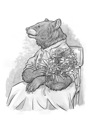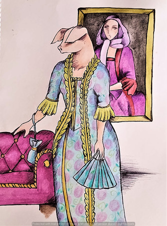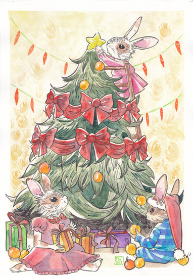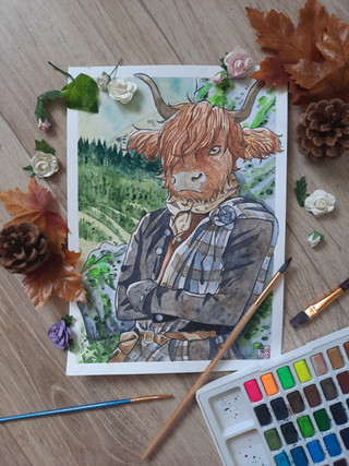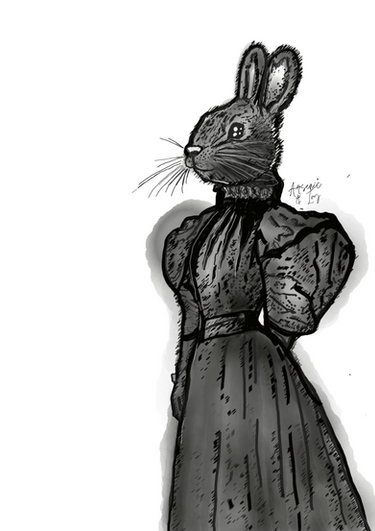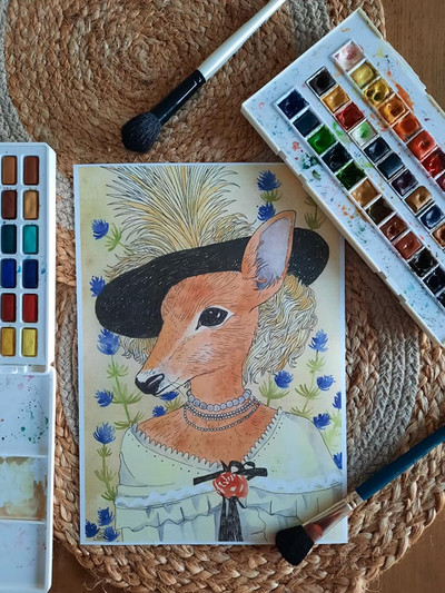 Here is a little rabbit. She loves to drink tea. I often go see her to chat with her. She doesn't like going out much but loves meeting people. She let me draw it. I painted his portrait in watercolor.