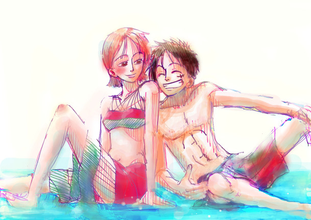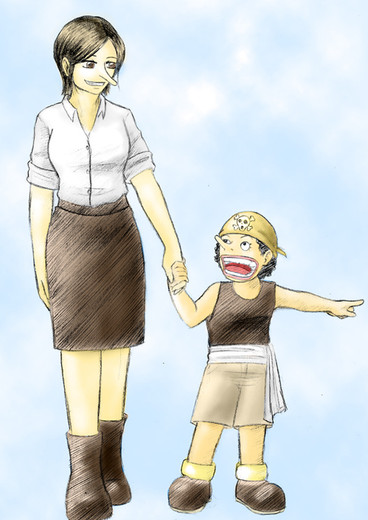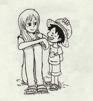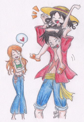Sorry, i know this is bad. The colors and the line art. This pic is old so it's not as good. I've been meaning to upload it for a long time but never got around to it. I didn't want to waist my time coloring a bad pic too so now the colors are bad too. It's a messWell the idea behind it was that one day I was thinkling about what would happen if the crew now met Luffy when he was 7, (because I think he's so cute). So this pic came into my head and I had to draw it!
