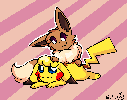 One prize for of her eevee, Lune, and her pikachu Coda. :3Lune & Coda © ~Wolfie-Forever
