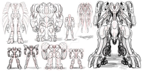 The back view is actually a traced version of the front view. My desk has a built-in glass area which can be used as a light-box. But it has no built-in light...So I put my desklamp underneath, tilted the head (its one of those flexi ones), put the penciled front image on the glass, put another comp. paper sheet overtop, and traced with an ink pen. Then I flipped the inked paper and put it under the original and traced with a pencil the reversed silhouette. The only problem was the feet. I never traced any of the inside; it's a habit I have XD.