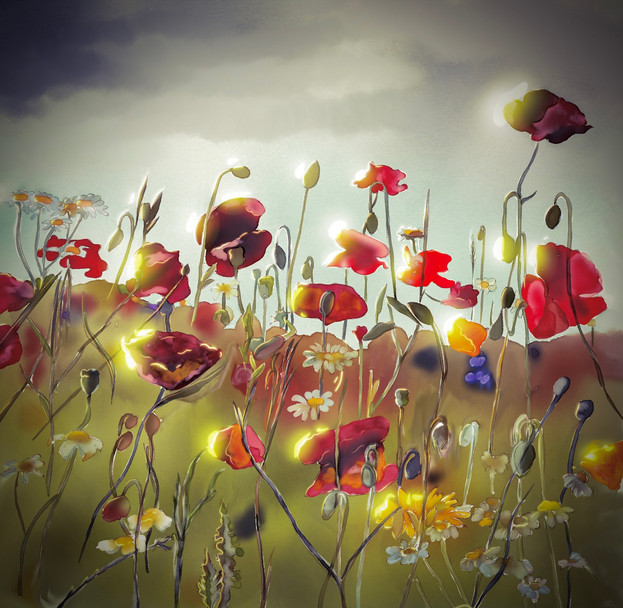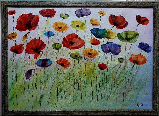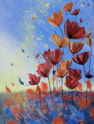 #acrylicpainting #flowers #poppies #sunset