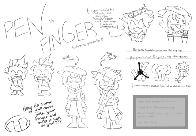 Don't know why, but I kinda like the idea of some of my OCs speaking in different fonts(counts for different moods too so that's why there's one angry one) so I made this chart in case of a comic or for random things I do.There're also some new faces in there too since I don't post everything I draw here >:])b