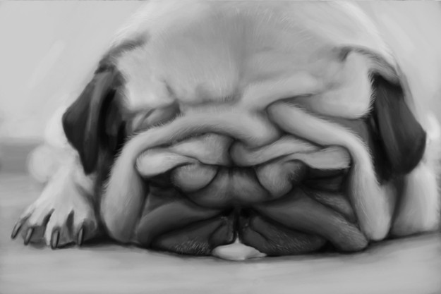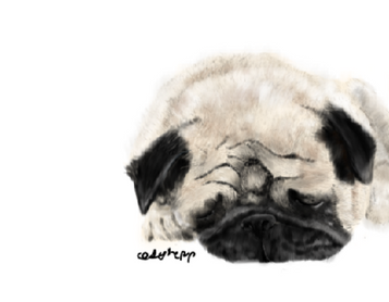 TALLY - The nickname of a 3 year old pug that sleeps all day, barks at the B&Q advert and has ventured into Polygon Art life drawings in her spare time. She has a penchant for banana and carrots, and warm laps to fold up next to, before evolving into her final form - a potato.What are your thoughts on this piece?